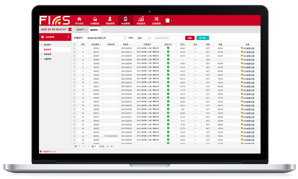 合力鉛酸電池管理系統(tǒng)是基于FICS合力智能車隊管理系統(tǒng)平臺的基礎上,針對叉車鉛酸動力電池的特點,量身打造的一款電池管理系統(tǒng)。通過傳感與通信技術(shù),可以遠程獲取鉛酸電池狀態(tài)數(shù)據(jù)、故障信息以及執(zhí)行電池狀態(tài)診斷、遠程控制及智能管理。合力鉛酸電池管理系統(tǒng)軟件平臺給您提供電池充電、維護保養(yǎng)、資產(chǎn)管理的優(yōu)化分析,是叉車動力蓄電池的貼心管家。